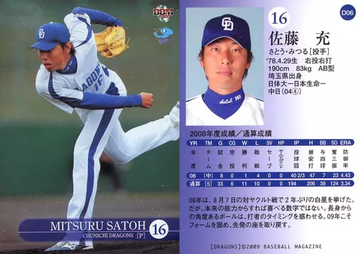 BBM / Regular / BBM2009 Chunichi Dragons D06 [Regular] : Mitsuru Sato (Kira parallel version)