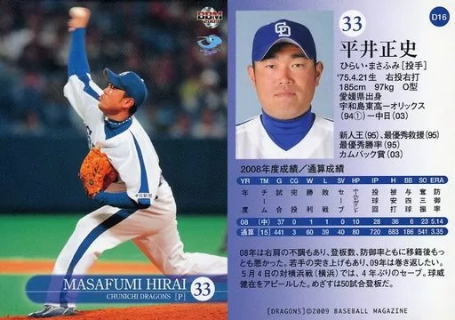Japanese title: BBM/レギュラー/BBM2009 中日ドラゴンズ D16[レギュラー]:平井正史