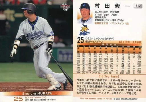 Japanese title: BBM/レギュラー/横浜ベイスターズ/BBM2011 ベースボールカード 1stバージョン 312[レギュラー]:村田修一