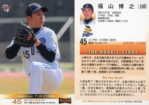 BBM / Regular / Yokohama Bay Stars / BBM2011 Baseball Card 1 st Version 322 Regular : Hiroyuki Fukuyama