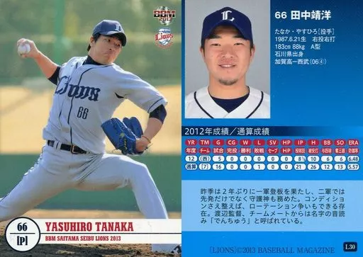 BBM / Regular / BBM2013 Saitama Seibu Lions L30 [Regular] : Yasuhiro Tanaka