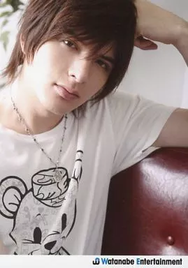 Japanese title: 生写真(男性)/アイドル/D-BOYS D-BOYS/城田優/バストアップ・衣装白・ネックレス・左手頭・赤色のソファ・ロゴ入り「Watanabe Entertainment」/公式生写真