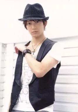 Japanese title: 生写真(男性)/俳優 辻本祐樹/膝上・衣装黒インナー白・左手肩・帽子・背景白/イベント限定物販生写真