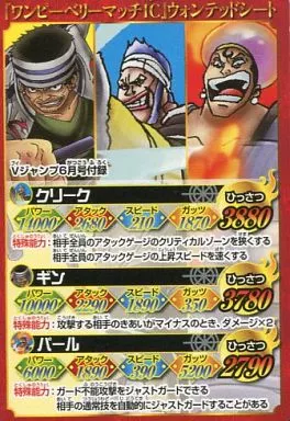 Japanese title: ワンピースデータカードダス/ワンピーベリーマッチアイシー/「Vジャンプ」2012年6月号付録 ウォンテッドシート(クリーク/ギン/パール)