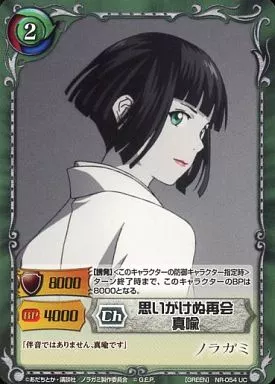 Japanese title: ジーククローネ/UC/キャラクター/緑/ブースターパック「ノラガミ」 NR-054[UC]:思いがけぬ再会 真喩
