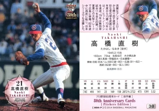 Japanese title: BBM/レギュラーカード/日本ハムファイターズ/BBM2014 プロ野球80周年カード・投手編 38 [レギュラーカード] : 高橋直樹