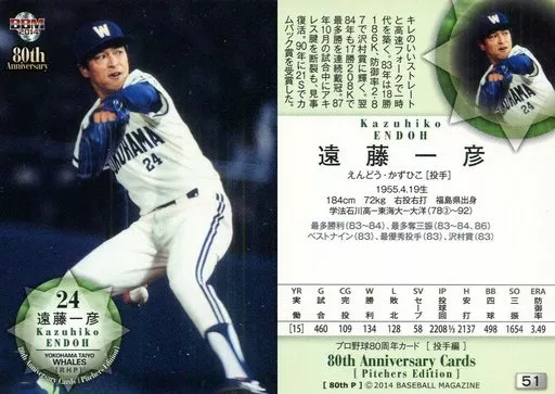 BBM / Regular Card / Yokohama Taiyo Whales / BBM2014 Professional Baseball 80 th Anniversary Card / Pitcher Edition 51 Regular Card : Kazuhiko Endo