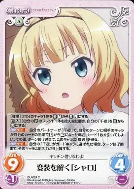 Japanese title: カオス/C/Chara/風/ブースターパック ご注文はうさぎですか? GU-024[C]:変装を解く「シャロ」