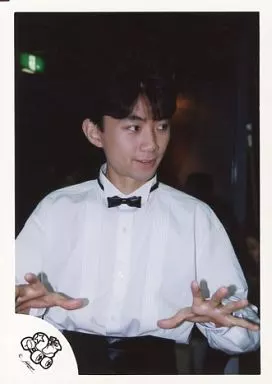 Japanese title: 生写真(ジャニーズ)/アイドル/光GENJI 光GENJI/内海光司/上半身・衣装白・黒・黒の蝶ネクタイ・両手パー・目線右/公式生写真