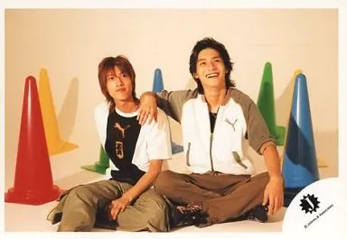 Japanese title: 生写真(ジャニーズ)/アイドル/ジャニーズ ジャニーズ/錦戸亮・内博貴/横型・全身・座り・錦戸左手肩・目線右上・周りにコーン・背景白/公式生写真