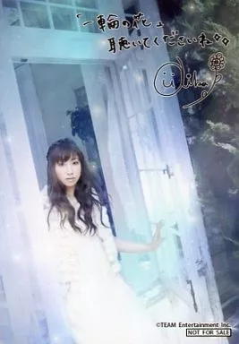 Japanese title: 生写真(女性)/歌手 吉岡亜衣加/膝上・衣装白・左手扉・背景植物/公式生写真