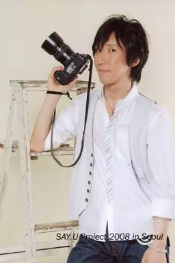 Japanese title: 生写真(男性)/声優 平川大輔/膝上・衣装白・右手カメラ・脚立・ポストカードサイズ/SAY U Project 2008 in Seoul