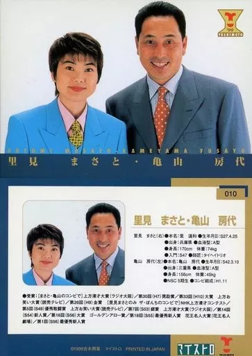 Japanese title: コレクションカード(男性)/吉本興業公認カード 010:里見まさと・亀山房代/レギュラーカード(タレントカード)/吉本興業公認カード