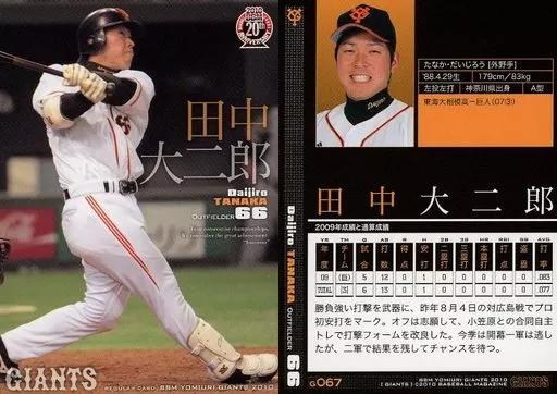 Japanese title: BBM/レギュラーカード/BBM2010 読売ジャイアンツ G067 [レギュラーカード] : 田中大二郎