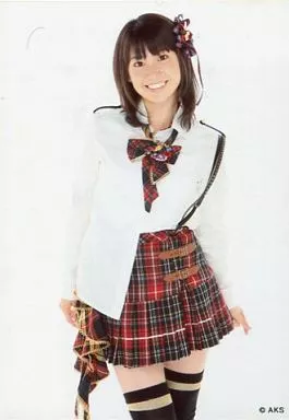 Japanese title: 生写真(AKB48・SKE48)/アイドル/AKB48 大島優子/膝上・制服白・両手横・背景白/AKS/公式生写真