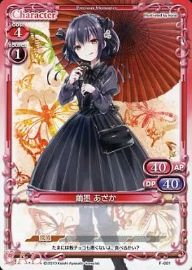 Japanese title: プレシャスメモリーズ/PR/キャラクター/赤/「ファミ通文庫15周年×アニメイト×プレシャスメモリーズスペシャルコラボレーション企画」第1弾 F-001[PR]:繭墨 あざか
