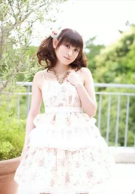 Japanese title: 生写真(女性)/声優/歌手 田村ゆかり/膝上・衣装白花柄・左手胸元・背景植物/CD「バンビーノ・バンビーナ」マグマニ特典