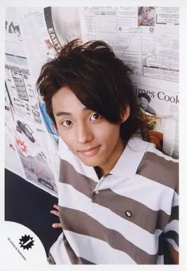 Japanese title: 生写真(ジャニーズ)/アイドル/Kis-My-Ft2 Kis-My-Ft2/藤ヶ谷太輔/上半身・衣装ボーダーグレー・座り・背景英字新聞/公式生写真