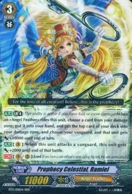 Japanese title: ヴァンガード/英語版/RRR/エンジェルフェザー/BT第11弾 Seal Dragons Unleashed[封竜解放] BT11/001EN[RRR]:Prophecy Celestial, Ramiel/神託の守護天使 レミエル