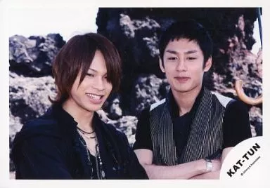 Japanese title: 生写真(ジャニーズ)/アイドル/KAT-TUN KAT-TUN/上田竜也・中丸雄一/横型・バストアップ・衣装黒・中丸腕組み・背景岩場/公式生写真