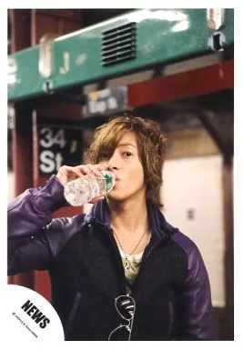 Japanese title: 生写真(ジャニーズ)/アイドル/NEWS NEWS/山下智久/バストアップ・衣装紫.黒・右手ペットボトル・サングラス・野外/公式生写真