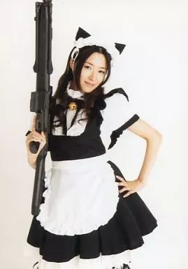 Japanese title: 生写真(女性)/声優 田中理恵/膝上・メイド服・左手腰・右手モデルガン・ネコ耳/田中理恵 ファースト写真集「彩リエ」アニメイト特典
