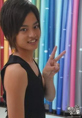 Japanese title: 生写真(ジャニーズ)/アイドル/NYC NYC/中山優馬/上半身・タンクトップ黒・左手ピース・背景カラフル/関西ジャニーズJr.@大阪松竹座2008夏