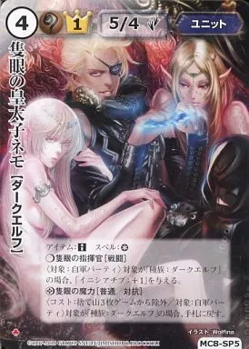 Japanese title: モンスターコレクション/極稀/ユニット/2010年9月度公認大会、公認プロモパック MC8-SP5[極稀]:隻眼の皇太子ネモ(VF)