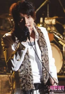 Japanese title: 生写真(ジャニーズ)/アイドル/ジャニーズJr. ジャニーズJr./内博貴/ライブフォト・上半身・衣装白・豹柄ファー茶・右手マイク・背景ドラム/UCHI with FiVe & Question?