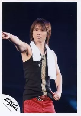 Japanese title: 生写真(ジャニーズ)/アイドル/KinKi Kids Kinki Kids/堂本光一/ライブフォト・膝上・タンクトップ黒.金・ズボン赤・左手マイク・右手人差し指立て・タオル白/公式生写真