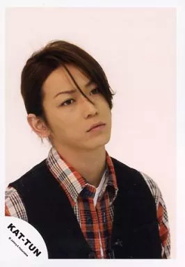 Japanese title: 生写真(ジャニーズ)/アイドル/KAT-TUN KAT-TUN/亀梨和也/衣装黒チェックオレンジ・バストアップ・首傾げ・背景白/公式生写真