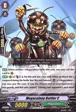 Japanese title: ヴァンガード/英語版/C/メガコロニー/EB第3弾 Cavalry of Black Steel[黒鋼の戦騎] EB03/030EN[C]:Megacolony Battler C/メガコロニー戦闘員C