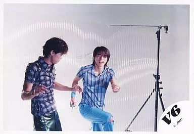 Japanese title: 生写真(ジャニーズ)/アイドル/V6 V6/坂本昌行・井ノ原快彦/横型・膝上・坂本シャツ黒チェック・井ノ原シャツ青ストライプ/公式生写真