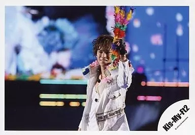 Japanese title: 生写真(ジャニーズ)/アイドル/Kis-My-Ft2 Kis-My-Ft2/千賀健永/ライブフォト・横型・膝上・衣装白・左手上げ/公式生写真