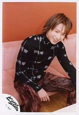 Japanese title: 生写真(ジャニーズ)/アイドル/KinKi Kids KinKi Kids/堂本光一/膝上・衣装黒・ソファに座り・笑顔・背景オレンジ/公式生写真