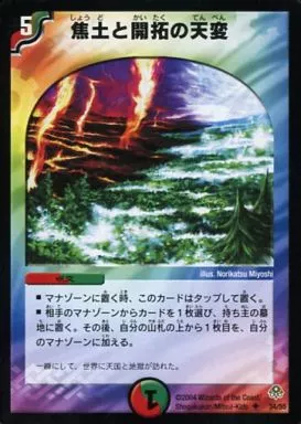 Japanese title: デュエルマスターズ/U/多色/呪文/[DM-11]聖拳編 第2弾 無限軍団の飛翔(エターナル・ウェーブ) 34/55[U]:焦土と開拓の天変