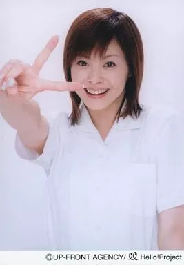 Hello! Project / Aya Matsuura / Upper Body / White Shirt / Right Hand Peace / Smile / Official Official photo