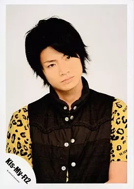 Japanese title: 生写真(ジャニーズ)/アイドル/Kis-My-Ft2 Kis-My-Ft2/横尾渉/上半身・ベスト黒・黄色の豹柄・首傾げ・背景白/公式生写真