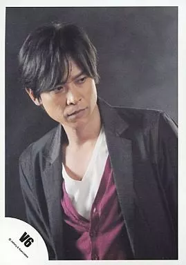 Japanese title: 生写真(ジャニーズ)/アイドル/V6 V6/坂本昌行/上半身・ジャケット黒・インナー白・紫・目線右下・背景黒/公式生写真