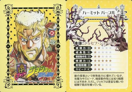 Japanese title: アニメ系トレカ/ジョジョ25周年 メモリアルカード ジョセフ・ジョースター×ハーミットパープル