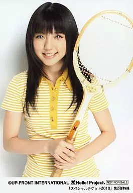 Official photo (Halopro) / idol / Hello! Project Hello! Project / Erina Mano / Waist / Costume yellow / Both hands Tennis racket / Background white / "Special Ticket 2010" 2nd special bonus