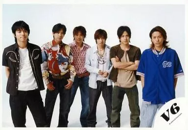 Japanese title: 生写真(ジャニーズ)/アイドル/V6 V6/6人(集合)/横型・膝上・センター三宅・岡田腕組み・背景白/公式生写真