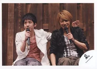 Japanese title: 生写真(ジャニーズ)/アイドル/嵐 嵐/相葉雅紀・二宮和也/横型・膝上・右手マイク・座り・二宮目線左上/公式生写真
