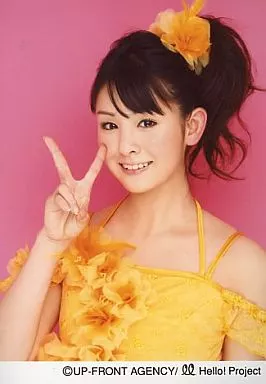 Japanese title: 生写真(ハロプロ)/アイドル/Berryz工房 Berryz工房/菅谷梨沙子/バストアップ・衣装黄色・右手ピース・背景ピンク/公式生写真