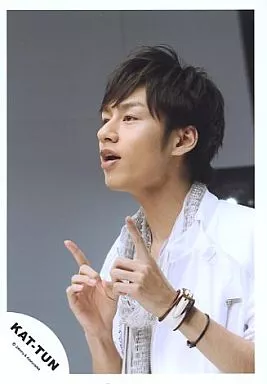 Japanese title: 生写真(ジャニーズ)/アイドル/KAT-TUN KAT-TUN/中丸雄一/バストアップ・衣装白・両手人差し指立て・目線左・背景グレー/公式生写真