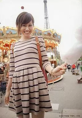 Official photo (AKB48, SKE48) / idol / AKB48 Atsuko Maeda / Above-the-knee ・ Costume beige ・ Black stripe pattern ・ Background amusement park / Atsuko Maeda Photo Collection "Clumsy" Purchase benefits Official photo