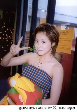 Japanese title: 生写真(ハロプロ)/アイドル/Hello! Project 松浦亜弥/上半身・衣裳青・ネックレス・右手ピース・背景窓/公式生写真