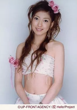 Japanese title: 生写真(ハロプロ)/アイドル/モーニング娘。 モーニング娘。/飯田圭織/膝上・衣装白・ピンク・花柄・髪飾り花・薔薇の花飾り・背景グレー/公式生写真