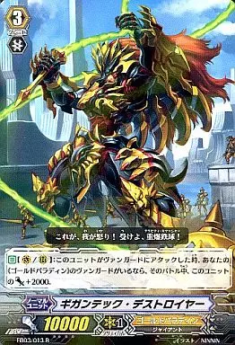 Japanese title: ヴァンガード/R/ノーマルユニット/ゴールドパラディン/エクストラブースター第3弾「黒鋼の戦騎」 EB03/013[R]:ギガンテック・デストロイヤー