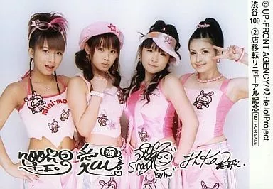 Official photo (Halopro) / idol / Minimoni Mini Moni / Set for 4 / Horizontal, Knee-Up, Costume Pink / Print with signature / Shibuya 109-2 Store Relocation Renewal Memorial / Official Official photo
